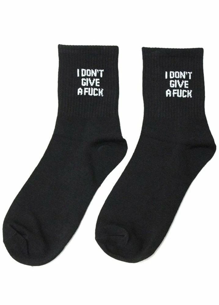 The IDGAF Ankle Socks are a comfy pair of black ankle socks featuring slogans on the sides.