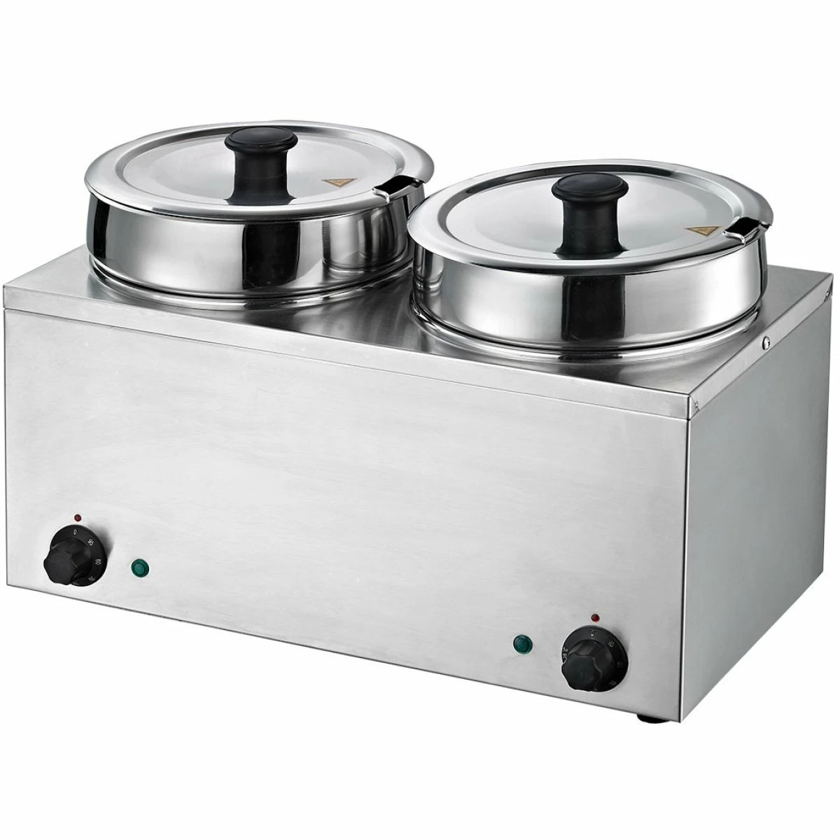 This wet well pot electric bain marie is the perfect solution for keeping pre-cooked foods at safe, ready to serve temperatures. Reliable and consistent, the bain marie is supplied with 2 x 2 litre pots and lids, ideal for baked beans, chilli, curry and gravy. The stainless steel construction ensures that the unit is robust and easy to clean, whilst the variable temperature controls are responsive and easy to use. This commercial bain marie would complement a range of professional catering establishments, such as takeaways, schools, restaurants and buffets.