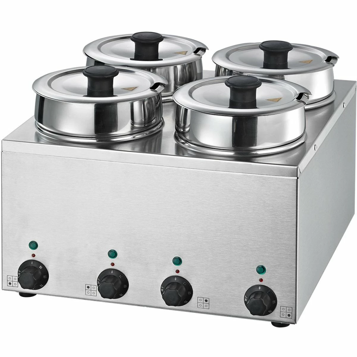 This wet well pot electric bain marie is the perfect solution for keeping pre-cooked foods at safe, ready to serve temperatures. Reliable and consistent, the bain marie is supplied with 2.75 litre pots and lids, ideal for baked beans, chilli, curry and gravy. The stainless steel construction ensures that the unit is robust and easy to clean, whilst the variable temperature controls are responsive and easy to use. This commercial bain marie would complement a range of professional catering establishments, such as takeaways, schools, restaurants and buffets.