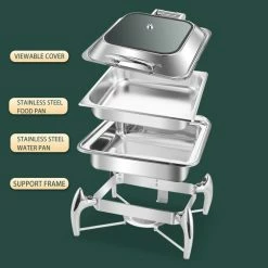 Make sure your catering food stays warmer for longer with this commercial chafing dish. Perfect for keeping your food at serving temperature in buffets, professional spring hydraulic chafing dishes offer portable and convenient heating. With a wet heat operation, it comes supplied with stainless steel water- and food pan. Made from easy-to-clean stainless steel to save you precious time at the end of the evening.