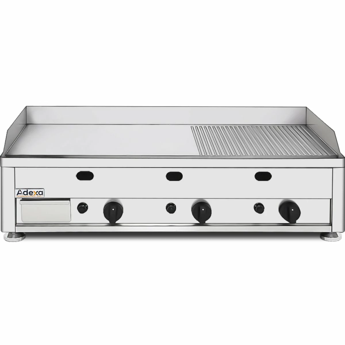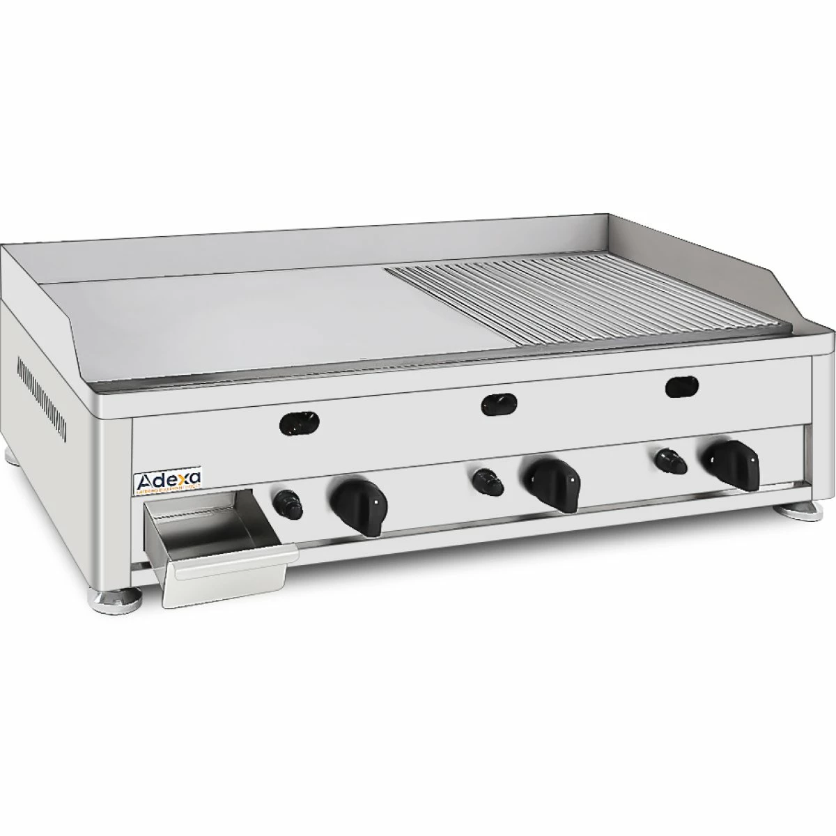 Commercial Gas Griddle Smooth/Ribbed Plate 3 Zones 9kW Countertop | Adexa GGN10002