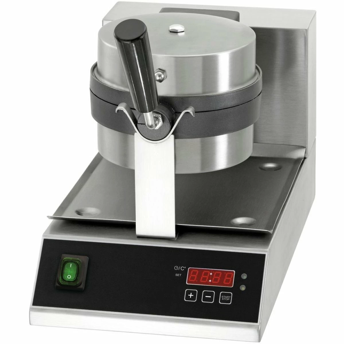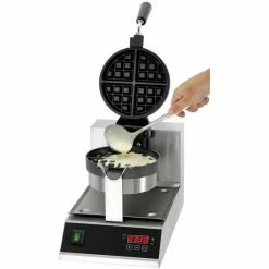 Professional electronic control waffle machine perfect for self-serve breakfast buffets, hotel breakfast bars, dining halls, or any restaurant or catering establishment serving waffles on its menu.