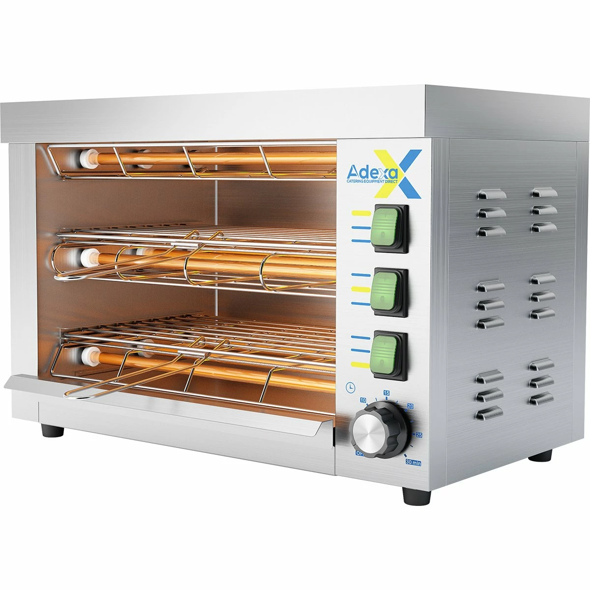 Highly powerful and reliable, this professional quartz salamander grill is an excellent choice for commercial kitchens. Whether you’re warming, cooking or finishing a dish, the catering salamander makes it simple thanks to multiple shelf positions, removable crumb tray and the built-in timer. You can also choose to grill with just the top elements if required, making the restaurant kitchen salamander perfect for many different tasks. This salamander is an incredible bargain at the current discount sale price.
