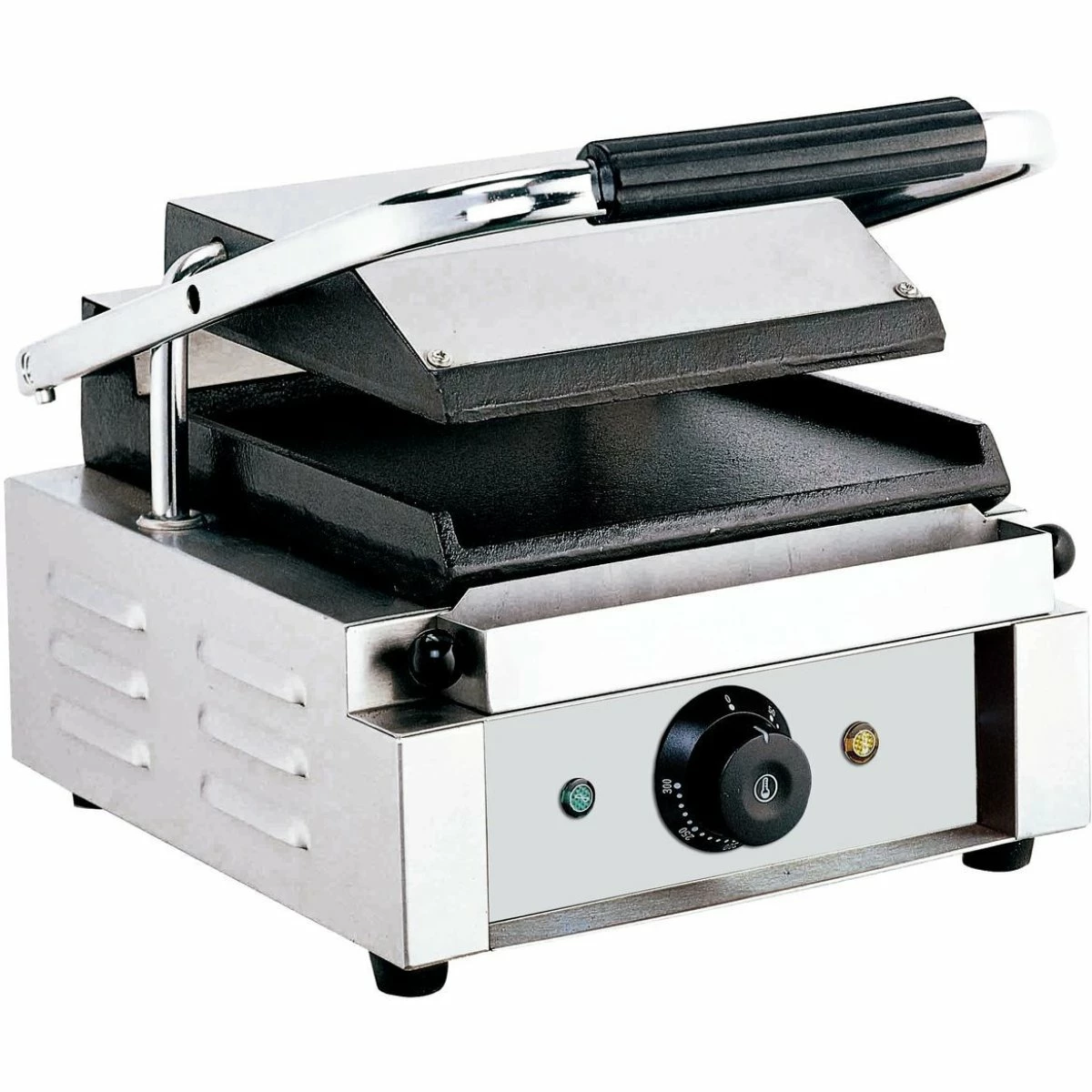 Grill your most popular sandwiches to perfection with this multi contact panini sandwich grill! This grill features smooth cast iron plates to evenly cook sandwiches and leave tantalizing grill marks on the bread. The thermostatic controls let you adjust temperatures so you can cook at the perfect temperature, while the stainless steel exterior frame ensures long-lasting durability. Great for grilling paninis, sandwiches, bread, and even hamburgers and quesadillas, this versatile grill will add variety to your establishment!