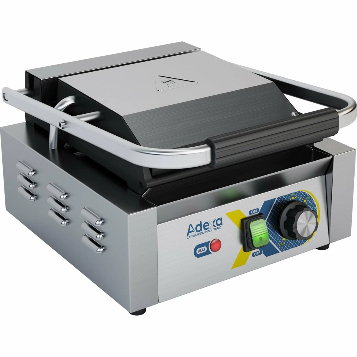 Grill your most popular sandwiches to perfection with this multi contact panini sandwich grill! This grill features smooth cast iron plates to evenly cook sandwiches and leave tantalizing grill marks on the bread. The thermostatic controls let you adjust temperatures so you can cook at the perfect temperature, while the stainless steel exterior frame ensures long-lasting durability. Great for grilling paninis, sandwiches, bread, and even hamburgers and quesadillas, this versatile grill will add variety to your establishment!