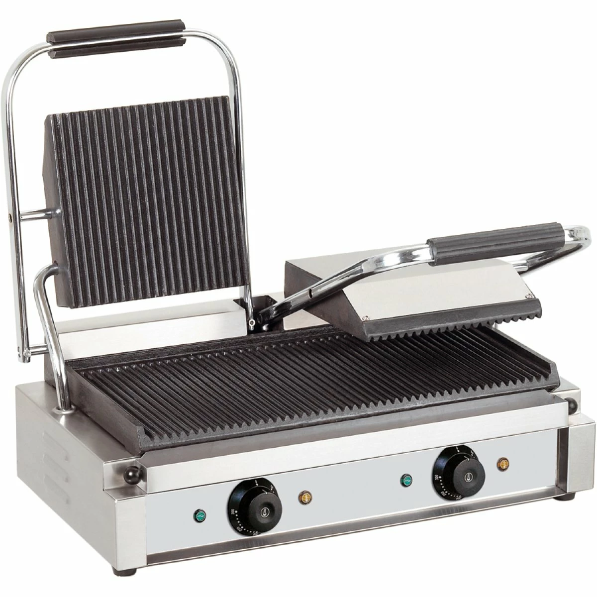 Full size commercial panini grill with a huge range of professional catering uses. The perfect contact grill for any professional restaurant, cafe, bar, sandwich shop or hotel.