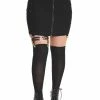 Hell Bunny’s Wolfie Mini Skirt is a pinstripe pleated skirt. The gothic skirt has a wide waistband with safety pin detail and a back zip fastening.
