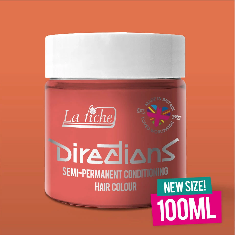 Peach is a soft and pale pink with orange tones. This lovely colour creates the best results on bleached hair, but can be used to tint lighter unbleached hair too. Results vary depending on hair type and porosity. Each pot is made from recycled ocean plastic and contains 100ml of vegan friendly hair dye.