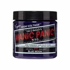 Blue Moon from Manic Panic is a cool cornflower blue shade that creates super vibrant results on bleached hair. This deep and pigmented blue shade is intense and eye-catching, perfect for achieving a unique true blue shade.