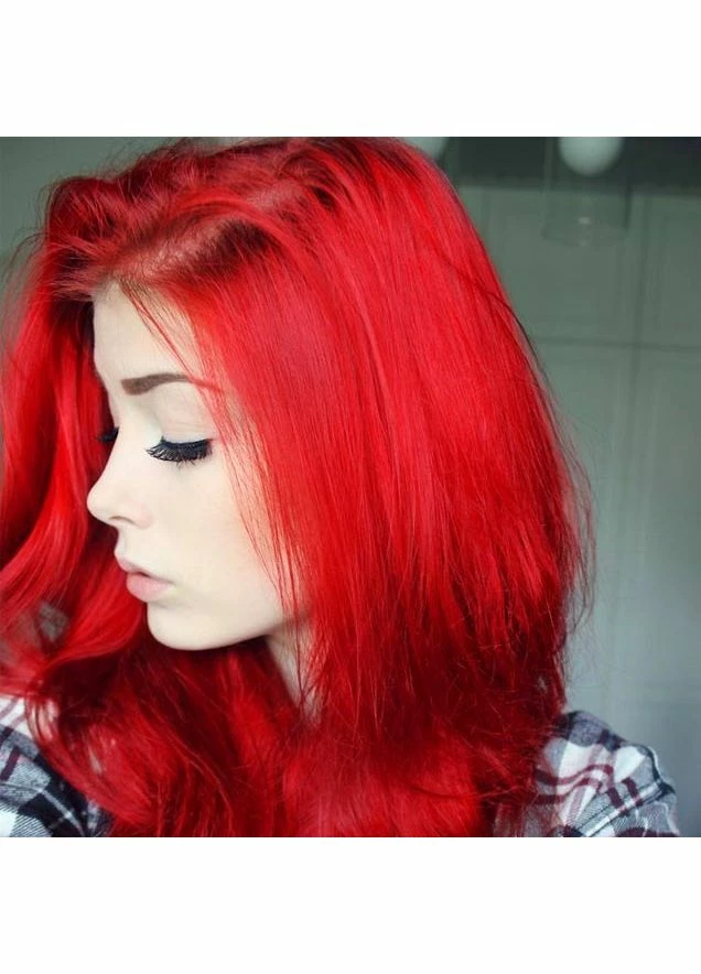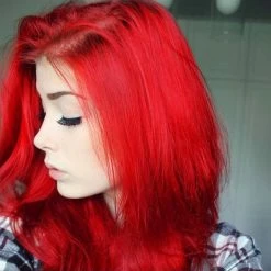 Pillarbox Red is a classic bright cherry red shade! This stunning vibrant red tone works best on a bleached blonde base for the most vibrant results, but can give a subtle tint to unbleached hair as well.