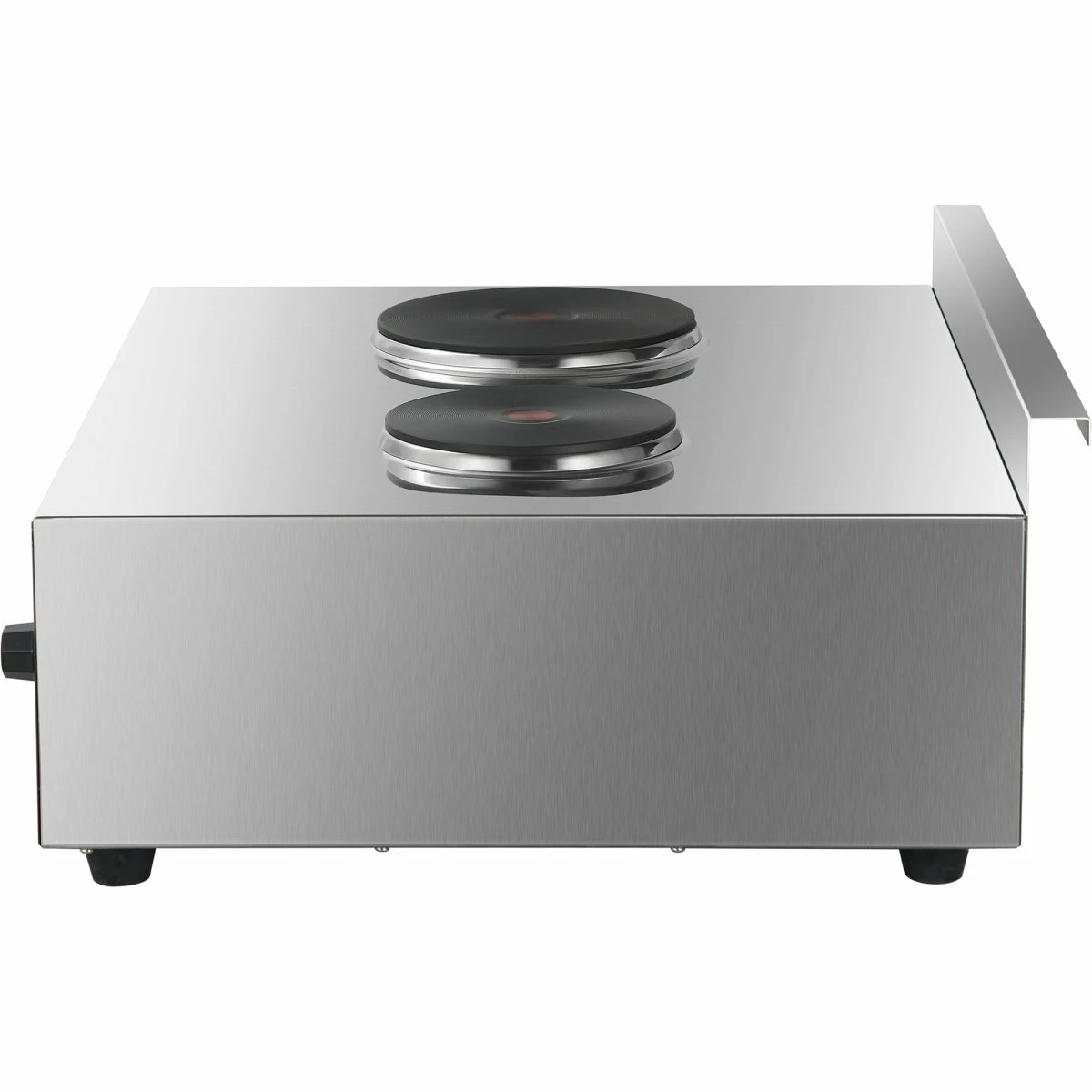 Save time and energy by using the professional 4.6kW boiling top. Designed for restaurant and catering business performance, the hob features a sturdy stainless steel construction. Featuring manual dial controls, it can be used as your primary hob or a handy plug-and-play secondary hob in a busy restaurant, this boiling top is a superb addition to any kitchen. This cook top is a huge bargain right now at this discount sales price.