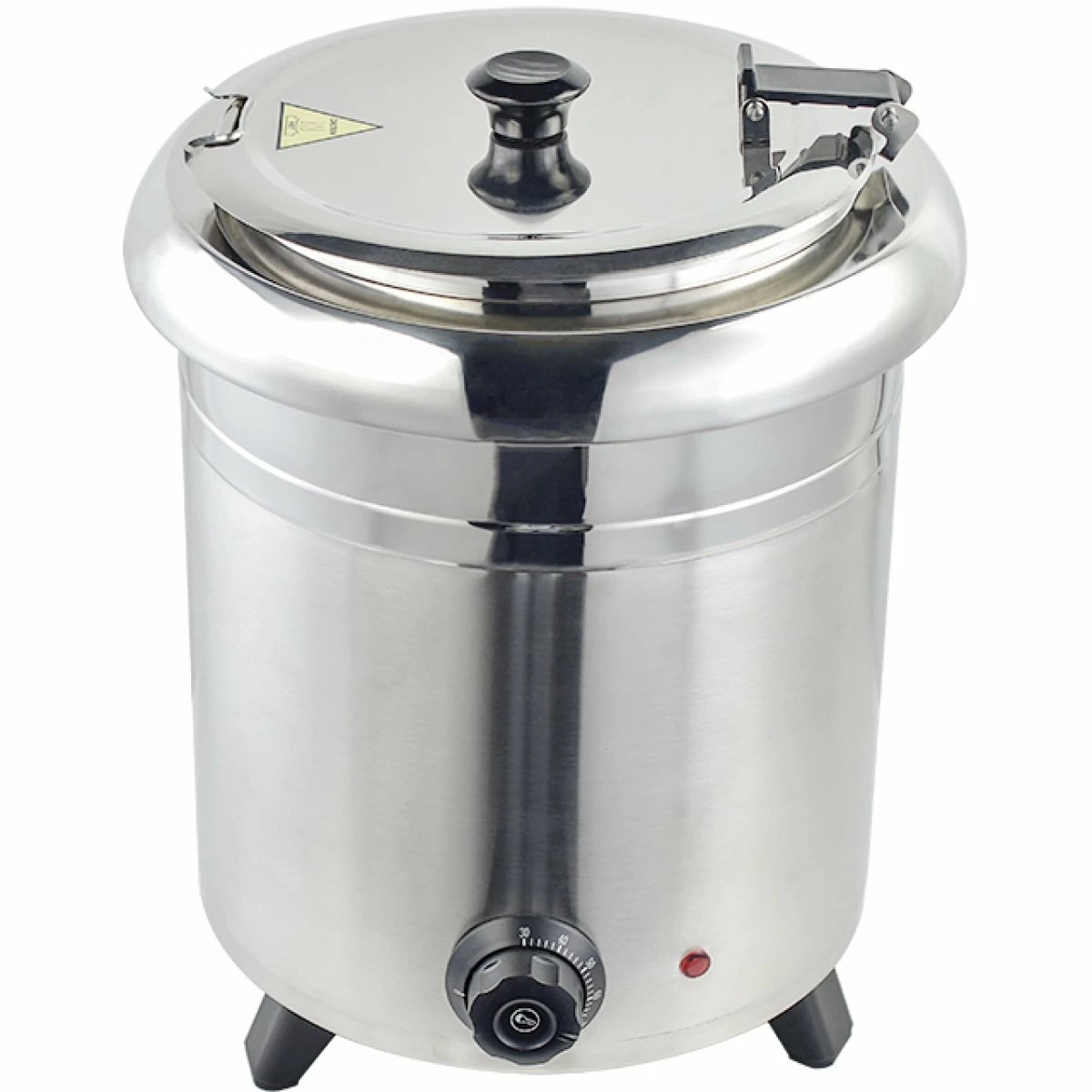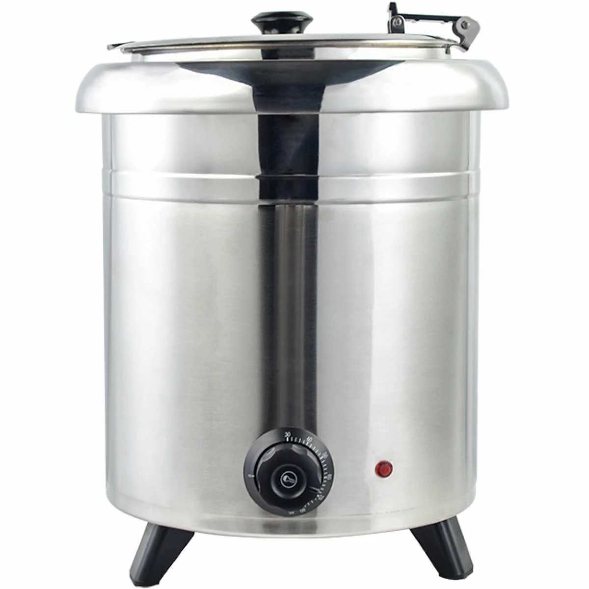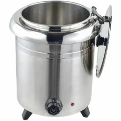 Commercial soup kettle with a 10 litre holding capacity, this Soup Kettle is ideal for preparing and serving piping-hot soups to your customers. This professional soup heater will keep soup at the ideal serving temperature. Perfect for cafeterias, diners, and self serve kiosks. Includes stainless steel insert.